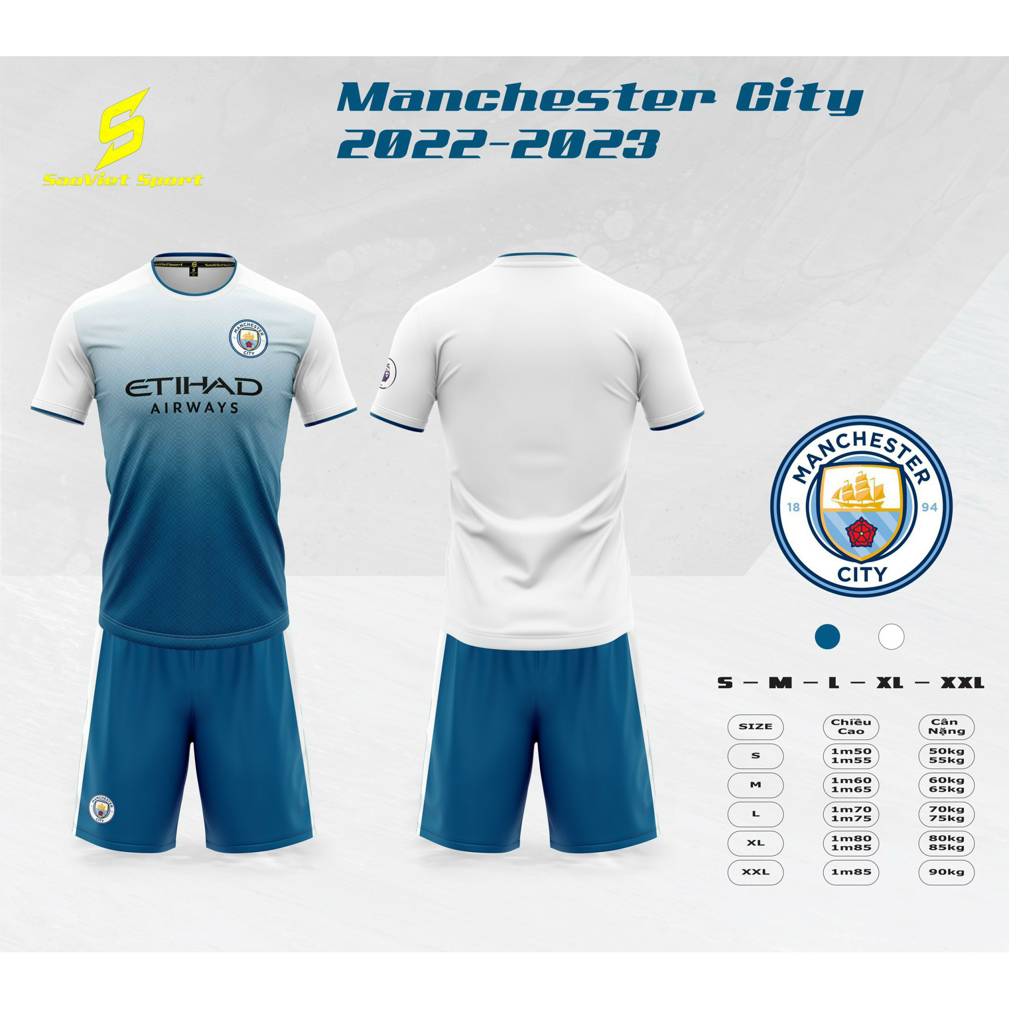 Bộ Quần Áo Bóng Đá MANCHESTER CITY XANH TRẮNG