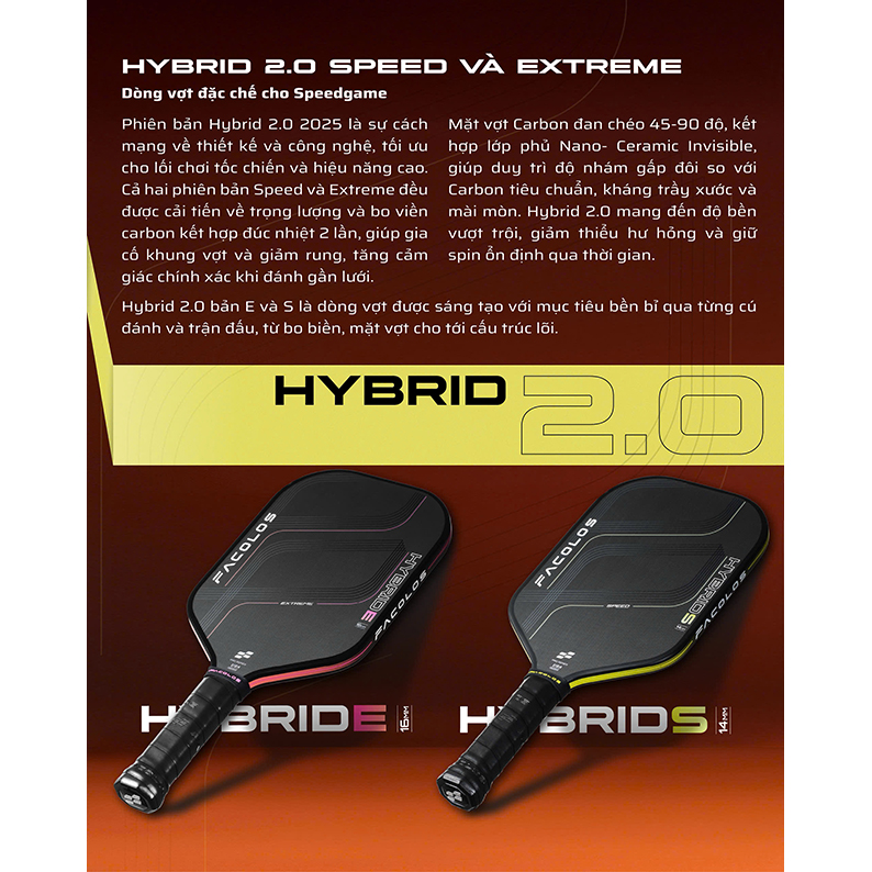 Vợt Pickleball Facolos HYBRIDE 2.0 ( Extreme ) 2025 – 16mm – Chính Hãng