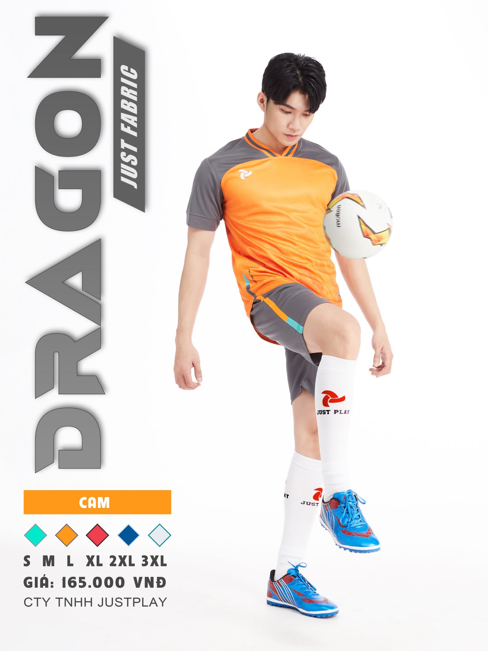 Bộ quần áo bóng đá, quần áo thể thao chính hãng JUSTPLAY DRAGON CAM