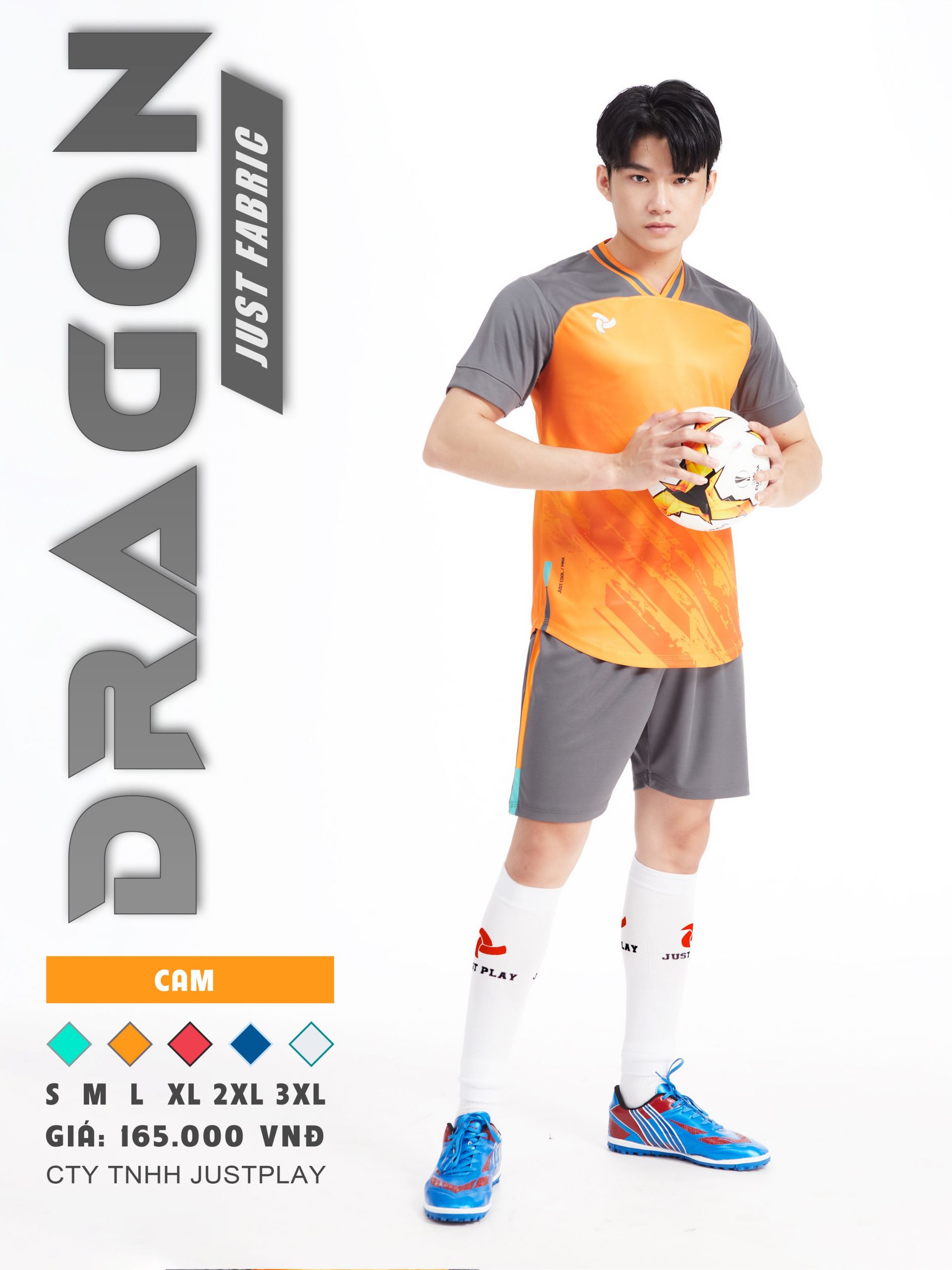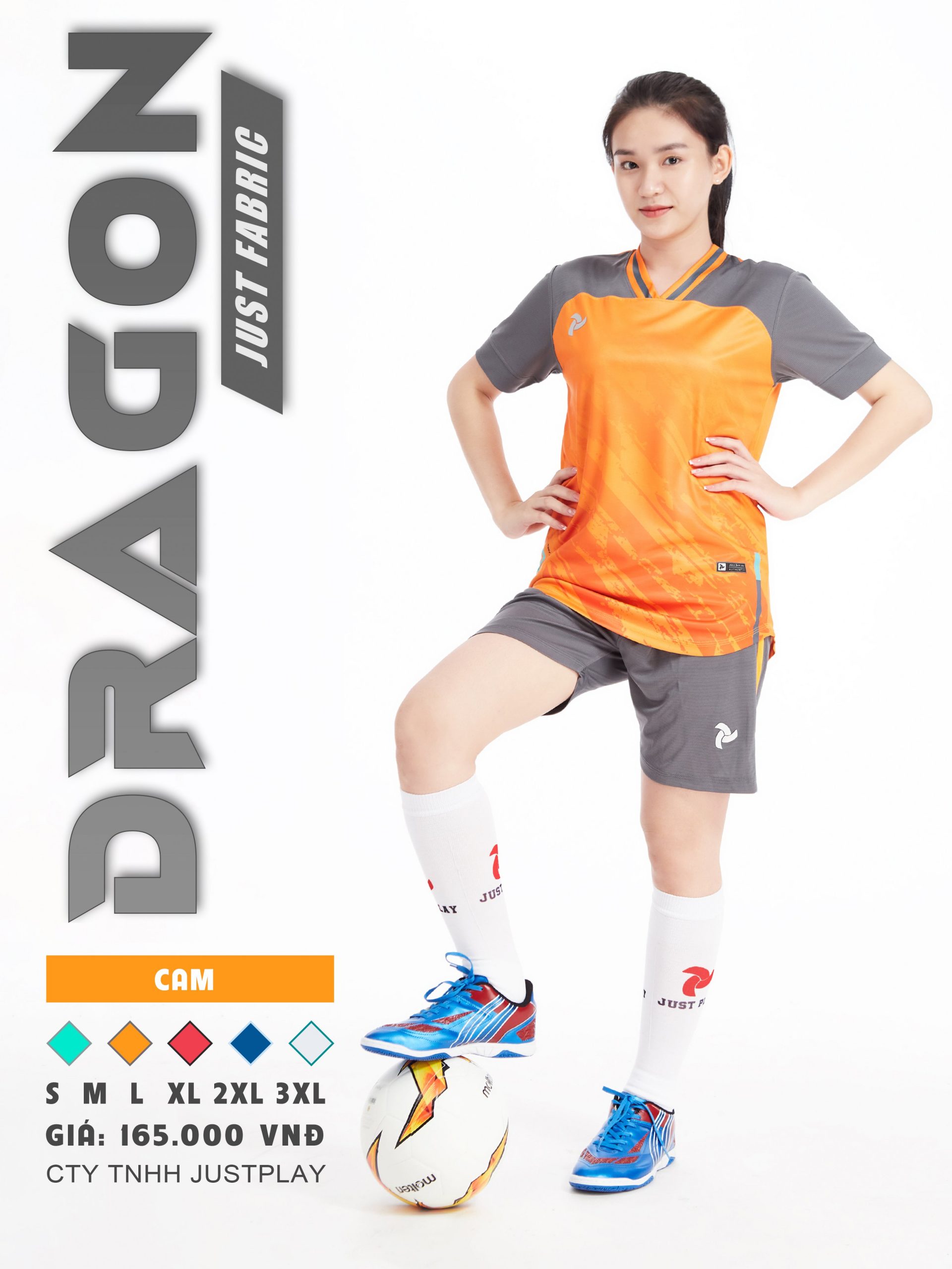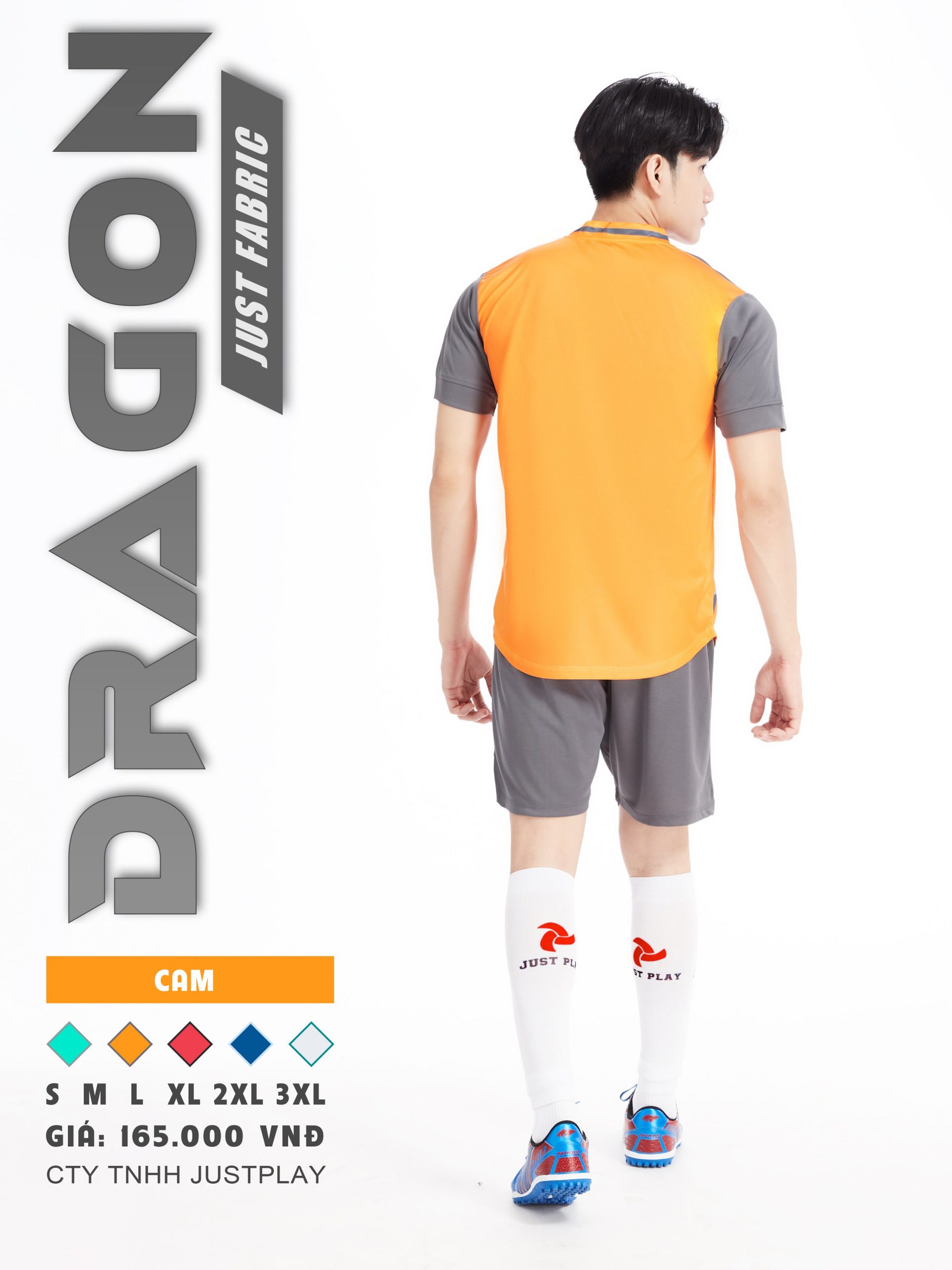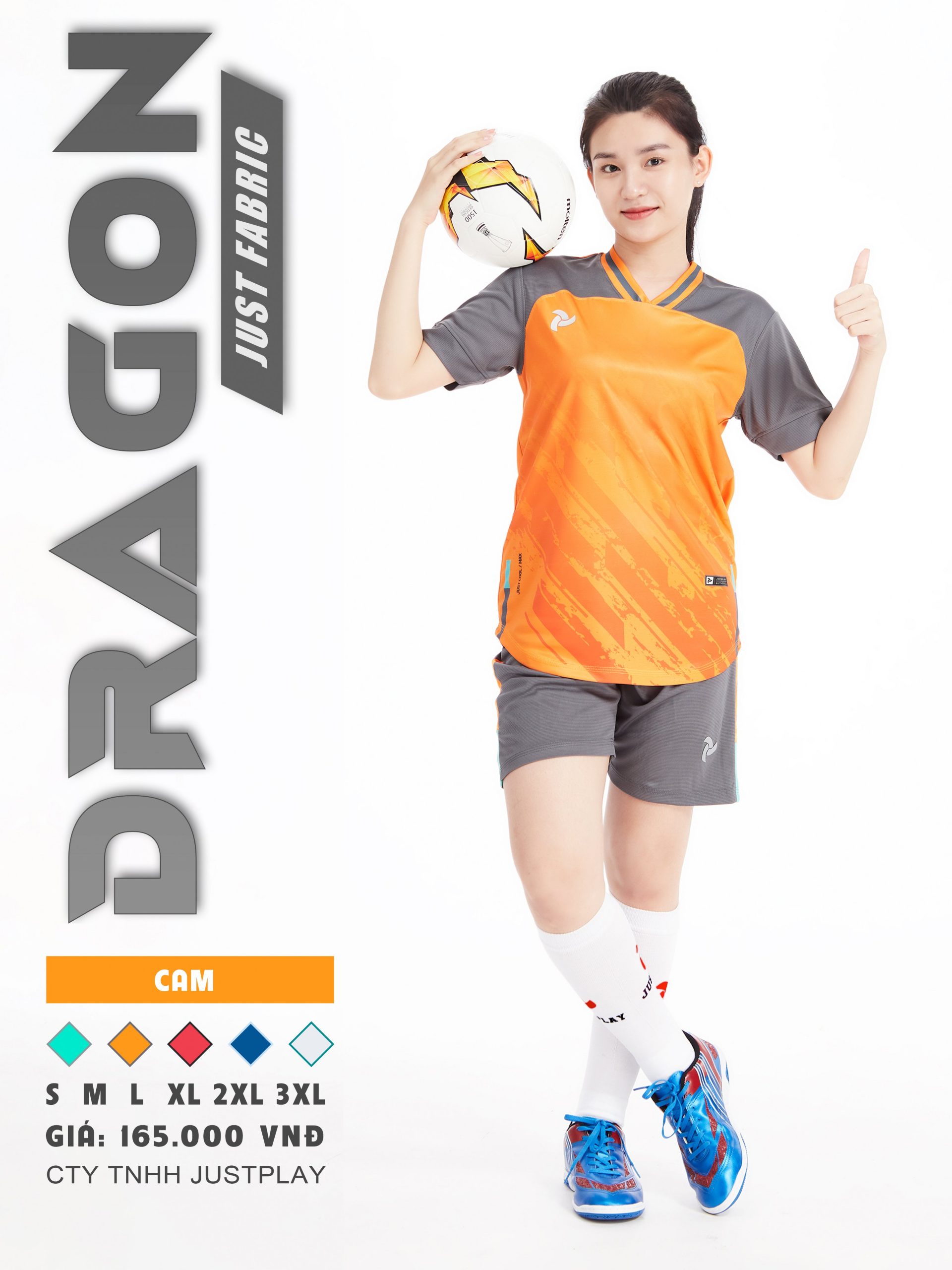 Bộ quần áo bóng đá Justplay Dragon Cam– Mẫu đẹp 2022 có size 3XL