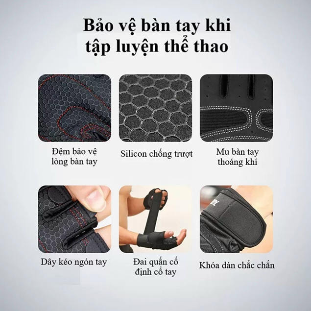 – Thiết kế hở ngón khoa học, tiện lợi để cầm, nắm trong quá trình tập luyện.